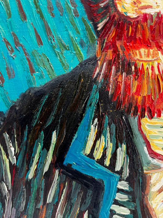 Handgeschilderd olieverfschilderij in Van Gogh-stijl: Zelfportret aan de ezel (60,5 × 50,5 cm) – Opgerold canvas
