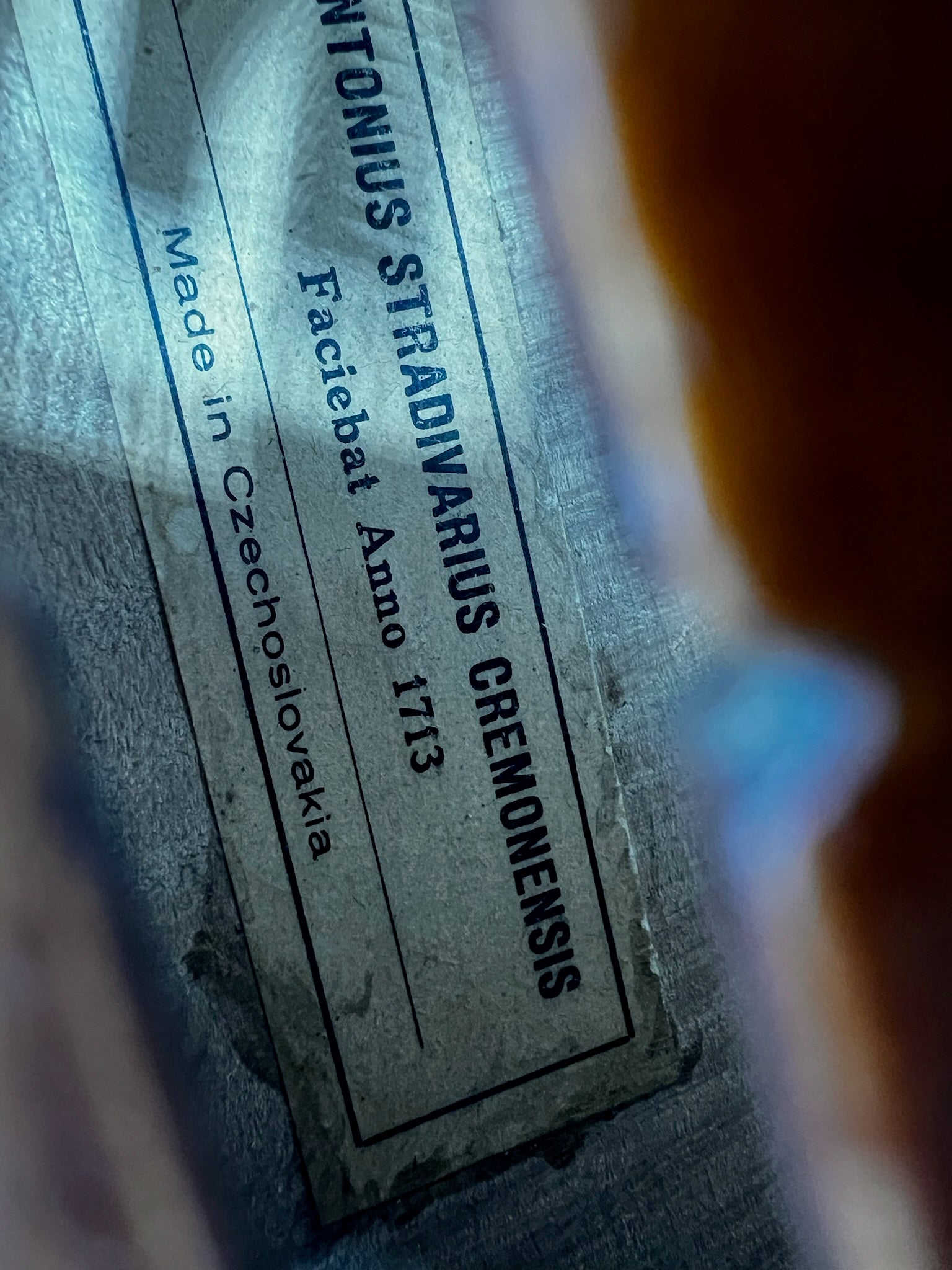 Deze unieke viool is een replica van de beroemde Antonius Stradivarius uit Cremona, Italië, gedateerd “1713”. De viool is geproduceerd in Tsjecho-Slowakije en biedt een uitstekende basis voor restauratie. Het instrument is perfect voor verzamelaars, restaurateurs of muzikanten die op zoek zijn naar een project om een authentiek klinkend instrument nieuw leven in te blazen.