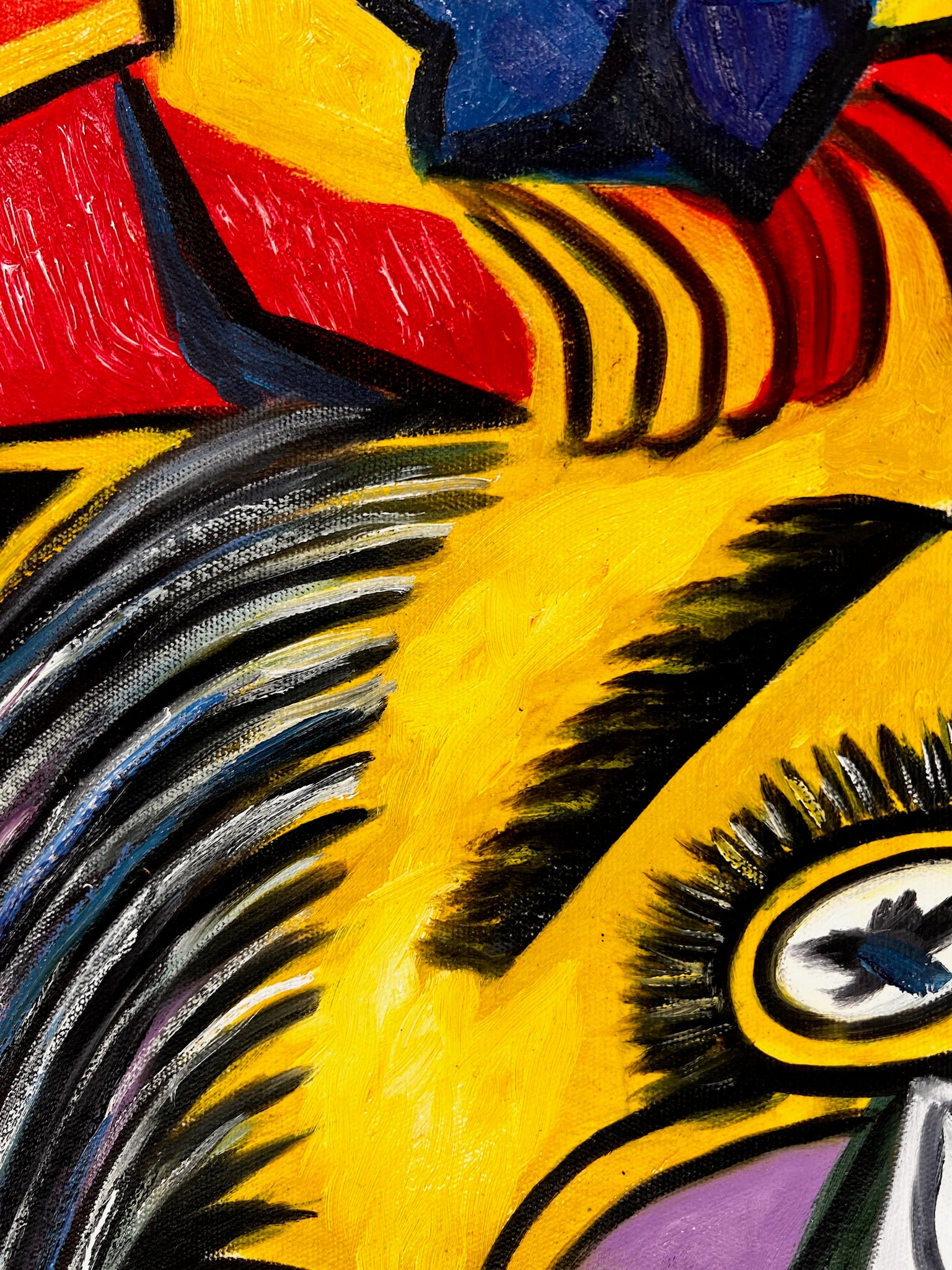 Een bijzonder kunstwerk dat direct de aandacht trekt en perfect is voor liefhebbers van moderne kunst en kubisme.