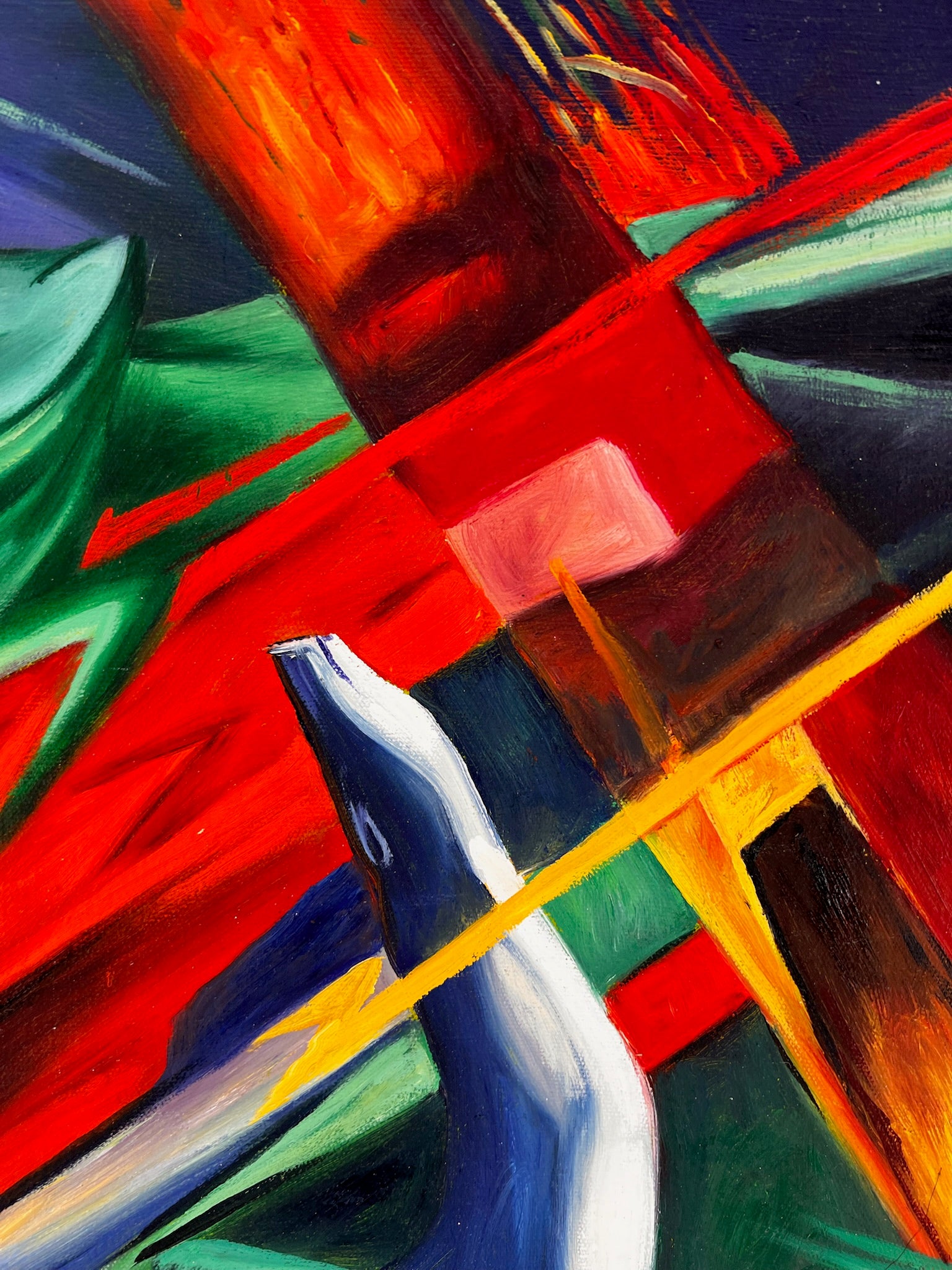 Deze handgeschilderde replica reproduceert Marc's levendige palet en abstracte vormen, waardoor het een opvallende en tot nadenken stemmende aanvulling op elke collectie is.